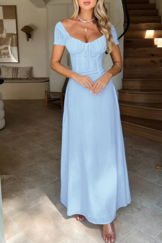Halter Solid Pockets Sleeveless A Line Long Dress